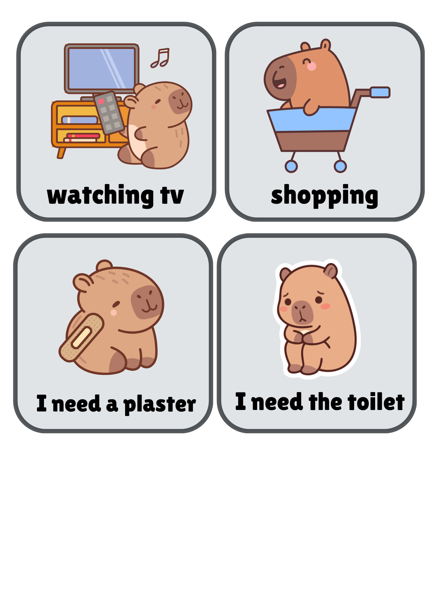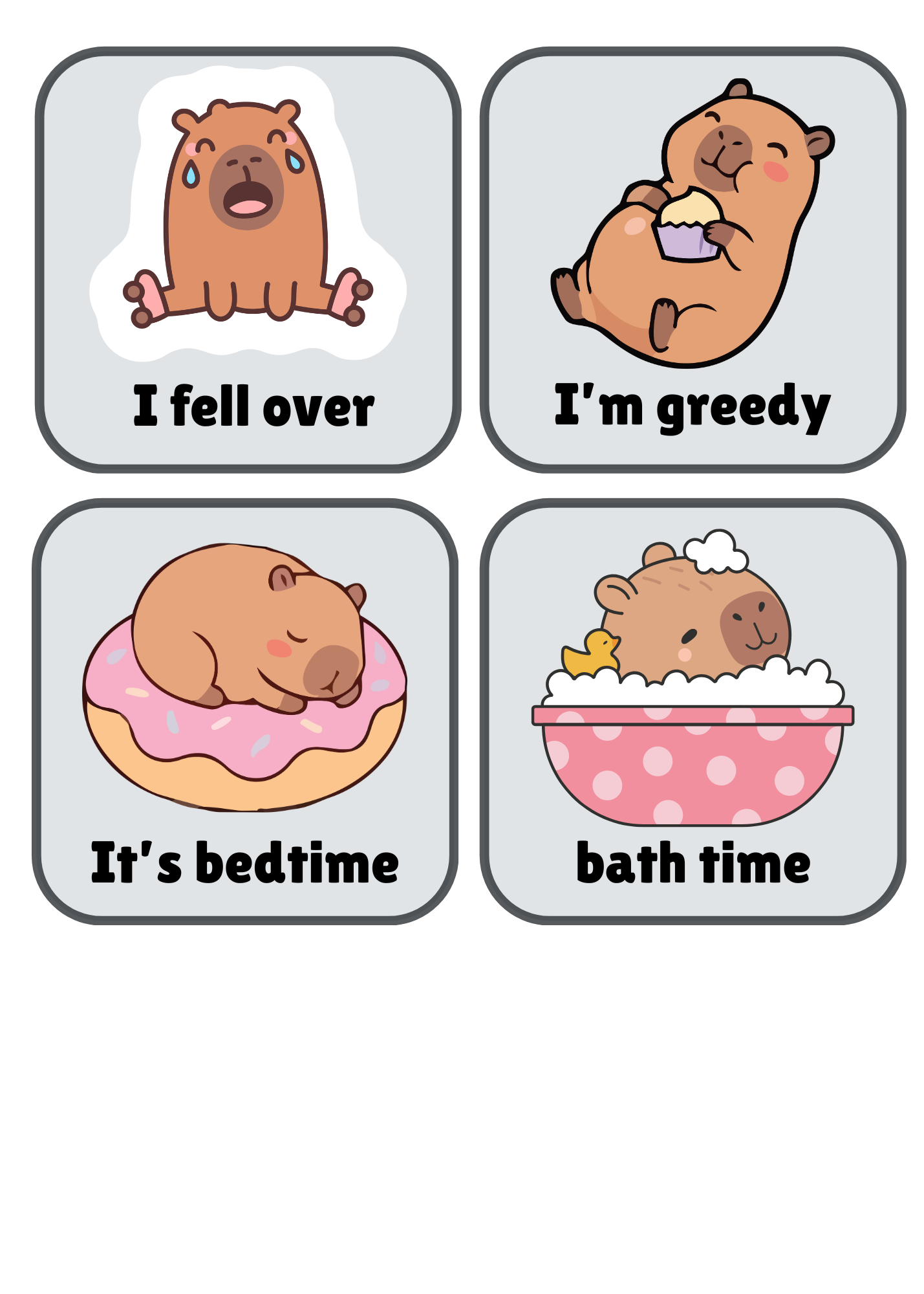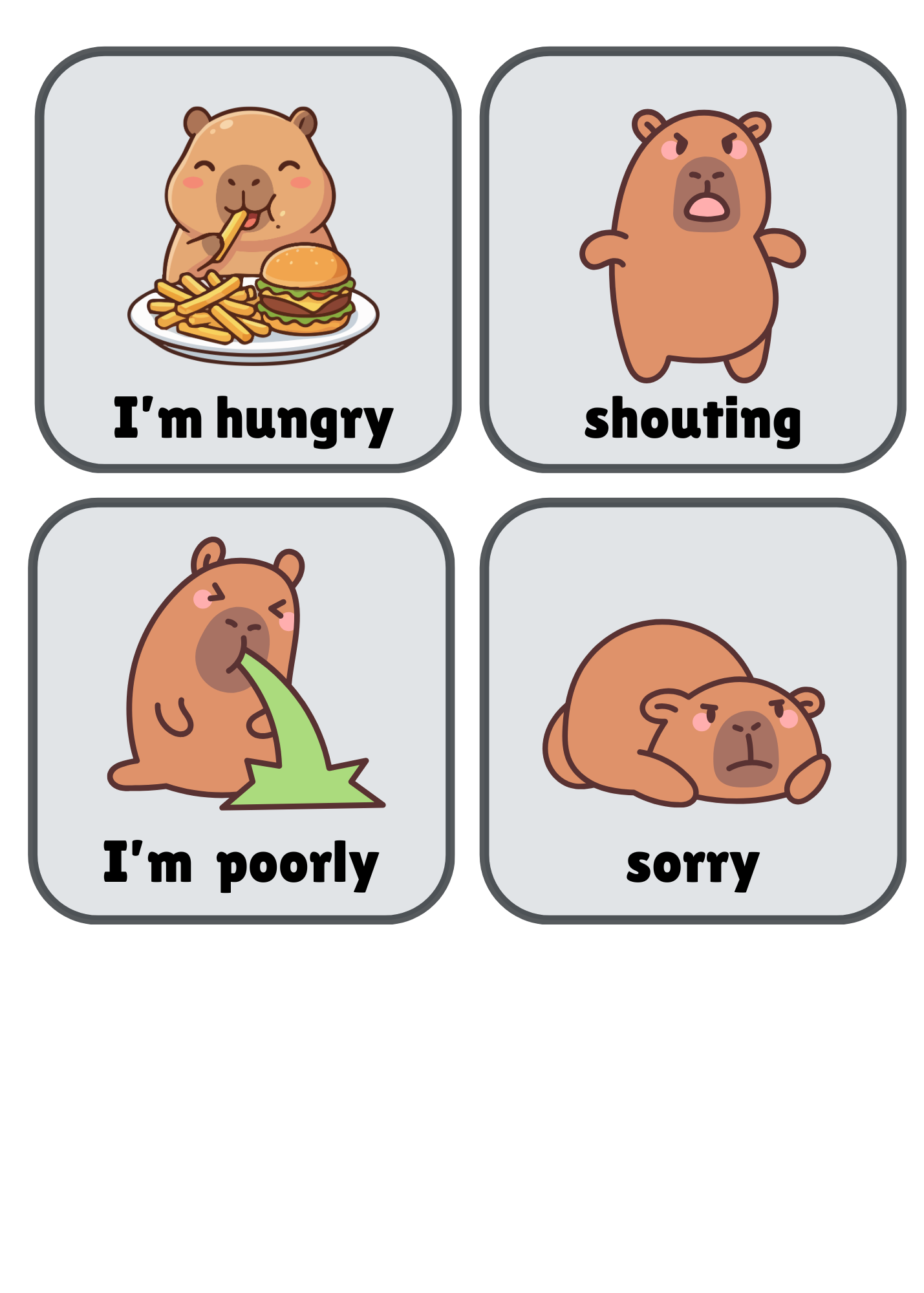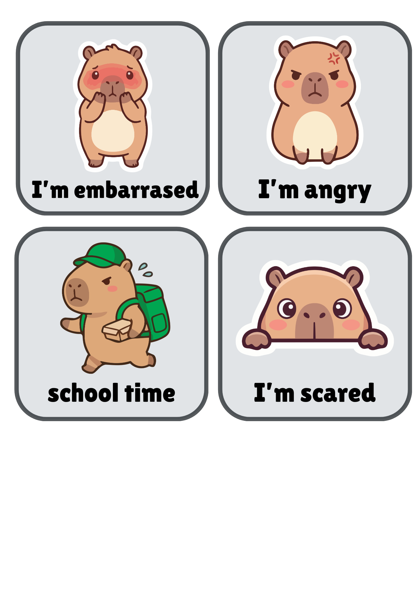 Capybara Visual Emotion Cards for Kids, feelings, flashcards, printable, visual timetable, SEN, Learning, educational flashcards, printable feelings flashcards