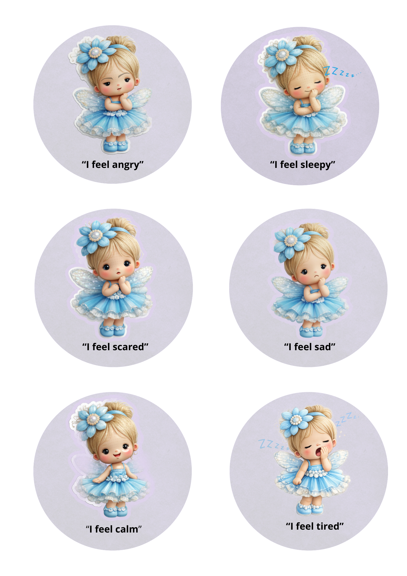 Fairy feeling stickers / Children's emotional stickers / printable stickers/ Instant download /