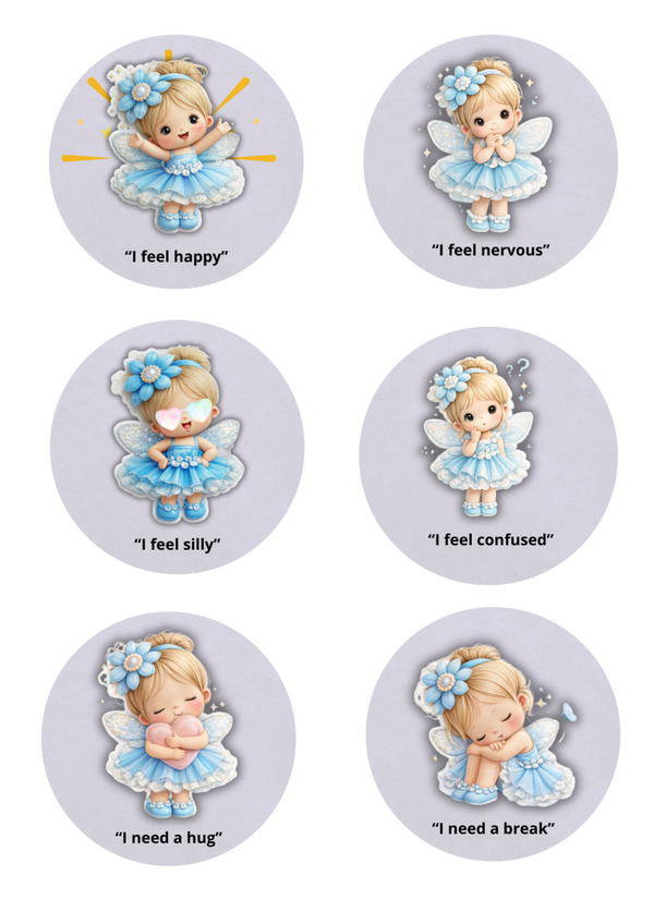 These adorable fairy emotion stickers are designed to support toddlers and young children in understanding and communicating how they feel each day. With soft pastel illustrations and simple "I feel..." phrases, these stickers turn big emotions into something children can recognise, name, and talk about.