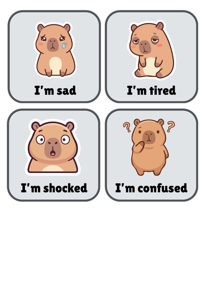 Capybara Visual Emotion Cards for Kids, feelings, flashcards, printable, visual timetable, SEN, Learning, educational flashcards, printable feelings flashcards